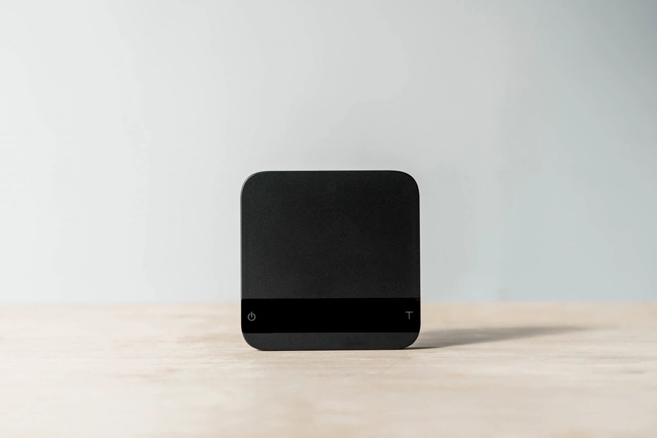 Automatisches Taragewicht für schnelle Messungen. Ein Auto-Start-Timer startet, wenn das Aufgießen beginnt und zwar hier bei dem ersten Tropfen, z.B. bei Pour Over in den Filter. Die Waage ist paßgenau für die Abtropfschale.