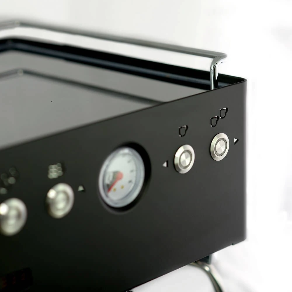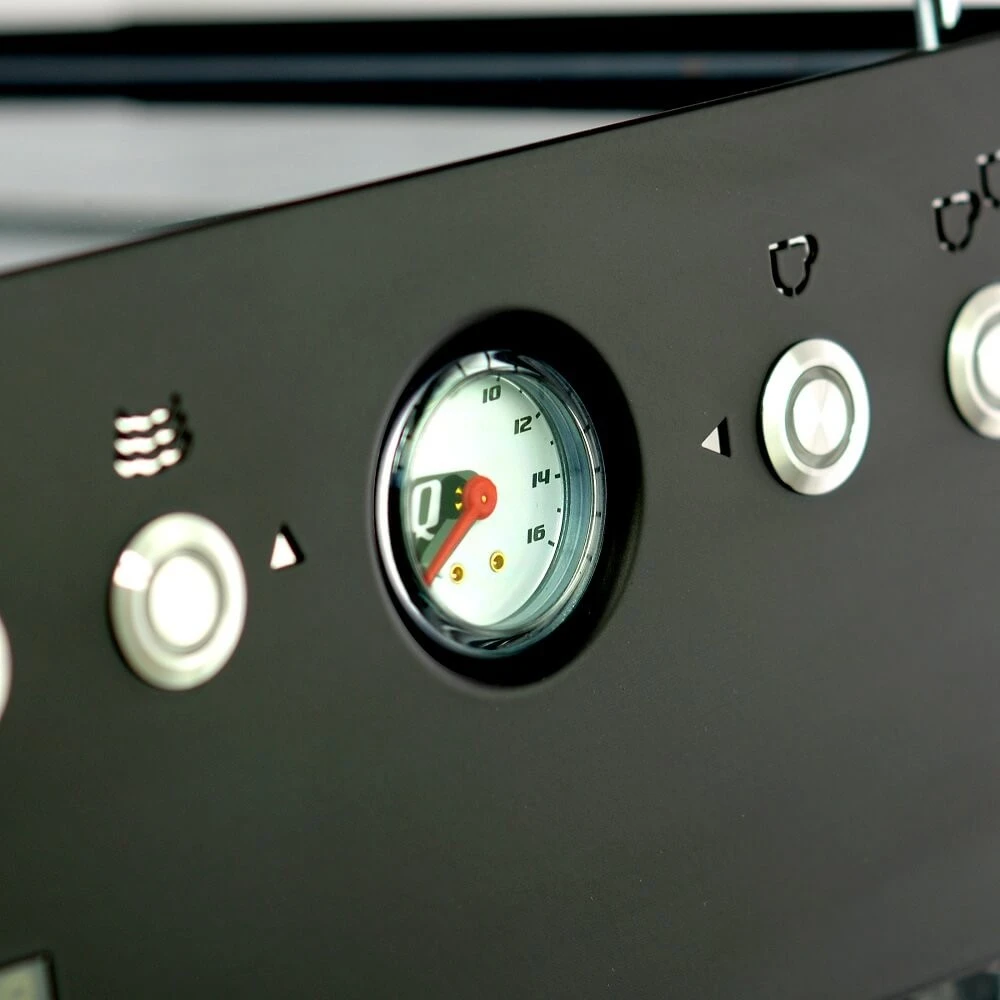 Die QuickMill LUNA erscheint sehr modern und reduziert, kein Plastik trübt den ersten Eindruck. Die Karrosserie ist vollständig aus Metall und wahlweise schwarz lackiert oder in chrom, genauer gesagt poliertes Edelstahl. Die Metalldrucktasten sind sehr modern und schlicht und machen Spaß zu drücken. Im Inneren ist die Espressomaschine einfach und solide aufgebaut, so dass die Wartung ebenfalls schnell von der Hand geht und keine großen Umrüstkosten verursacht.