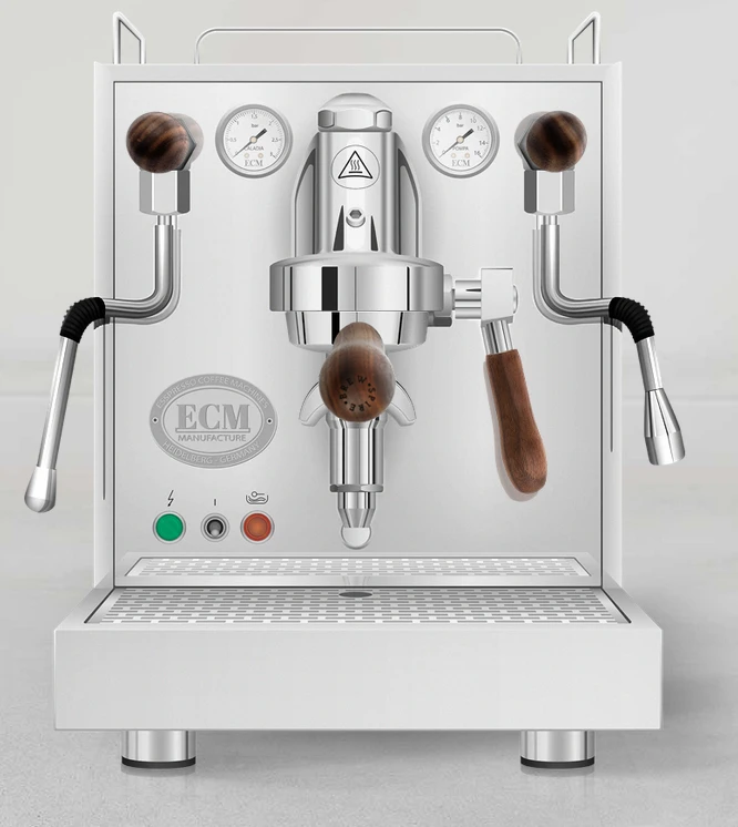 - Mit einem oder zwei Siebträgern, 2 Kipphebeln, Bezugshebelgriff und 58mm Tamper