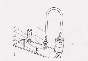 Dem Filter-Kit liegt derzeit nur eine Anleitung in englischer und italienischer Sprache bei. Daher eine kurze Erklärung, wie Sie den Umbausatz in Ihrer Maschine einbauen können. Zur Veranschaulichung dient das Bild oben. Bitte schrauben sie X1 und X2 aus ihrer Maschine ab (X3 und X4 so belassen) und befestigen die Teile 1, 2, 3 und 4 im Tank. Fertig ist der Umbau! Jetzt können sie problemlos aufsteckbare Filter für Ihre Espressomaschine verwenden.