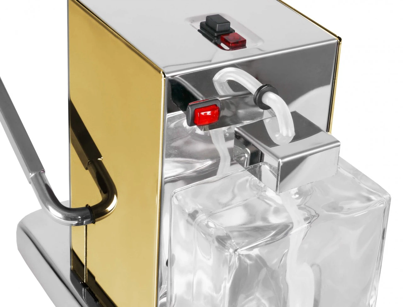 Damit Ihre La Piccola Espressomaschine immer tadellos funktioniert empfehlen wir Ihnen möglichst kalkarmes bzw. kalkfreies Wasser zu verwenden. Wer keine Möglichkeit hat das Wasser selber zu enthärten kann auch VOLVIC oder unser verwenden, das nachweislich am besten für Espressomaschinen geeignet ist. Denn auch wenn man die La Piccola Maschinen mit Säure entkalken kann sind wir keine großen Fans von diesen Mitteln, da die Gefahr besteht, dass immer Rückstände davon in der Maschine bleiben. Die La Piccola Piccola arbeitet nicht mit einem Heizkessel im Inneren sondern mit einem Durchlauferhitzer. Durch diesen sogenannten Thermoblock läuft eine kleine Spindel durch die das Wasser hindurchzirkuliert und sich dabei erhitzt. Diese Spindel ist jedoch so fein und dünn, dass schon kleine Kalkablagerungen zu Verstopfungen führen können. Dann kann auch kein Wasser und kein Entkalker mehr durchfließen und es bildet sich ein Rückstau, der zum Platzen der Anschlussschläuche führen kann.