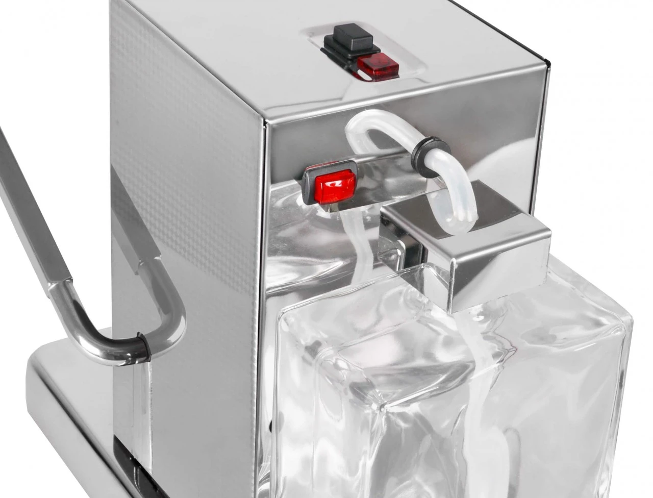 Damit Ihre La Piccola Espressomaschine immer tadellos funktioniert empfehlen wir Ihnen möglichst kalkarmes bzw. kalkfreies Wasser zu verwenden. Wer keine Möglichkeit hat das Wasser selber zu enthärten kann auch VOLVIC oder unser verwenden, das nachweislich am besten für Espressomaschinen geeignet ist. Denn auch wenn man die La Piccola Maschinen mit Säure entkalken kann sind wir keine großen Fans von diesen Mitteln, da die Gefahr besteht, dass immer Rückstände davon in der Maschine bleiben. Die La Piccola Piccola arbeitet nicht mit einem Heizkessel im Inneren sondern mit einem Durchlauferhitzer. Durch diesen sogenannten Thermoblock läuft eine kleine Spindel durch die das Wasser hindurchzirkuliert und sich dabei erhitzt. Diese Spindel ist jedoch so fein und dünn, dass schon kleine Kalkablagerungen zu Verstopfungen führen können. Dann kann auch kein Wasser und kein Entkalker mehr durchfließen und es bildet sich ein Rückstau, der zum Platzen der Anschlussschläuche führen kann.