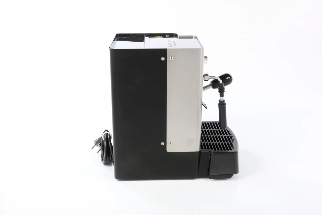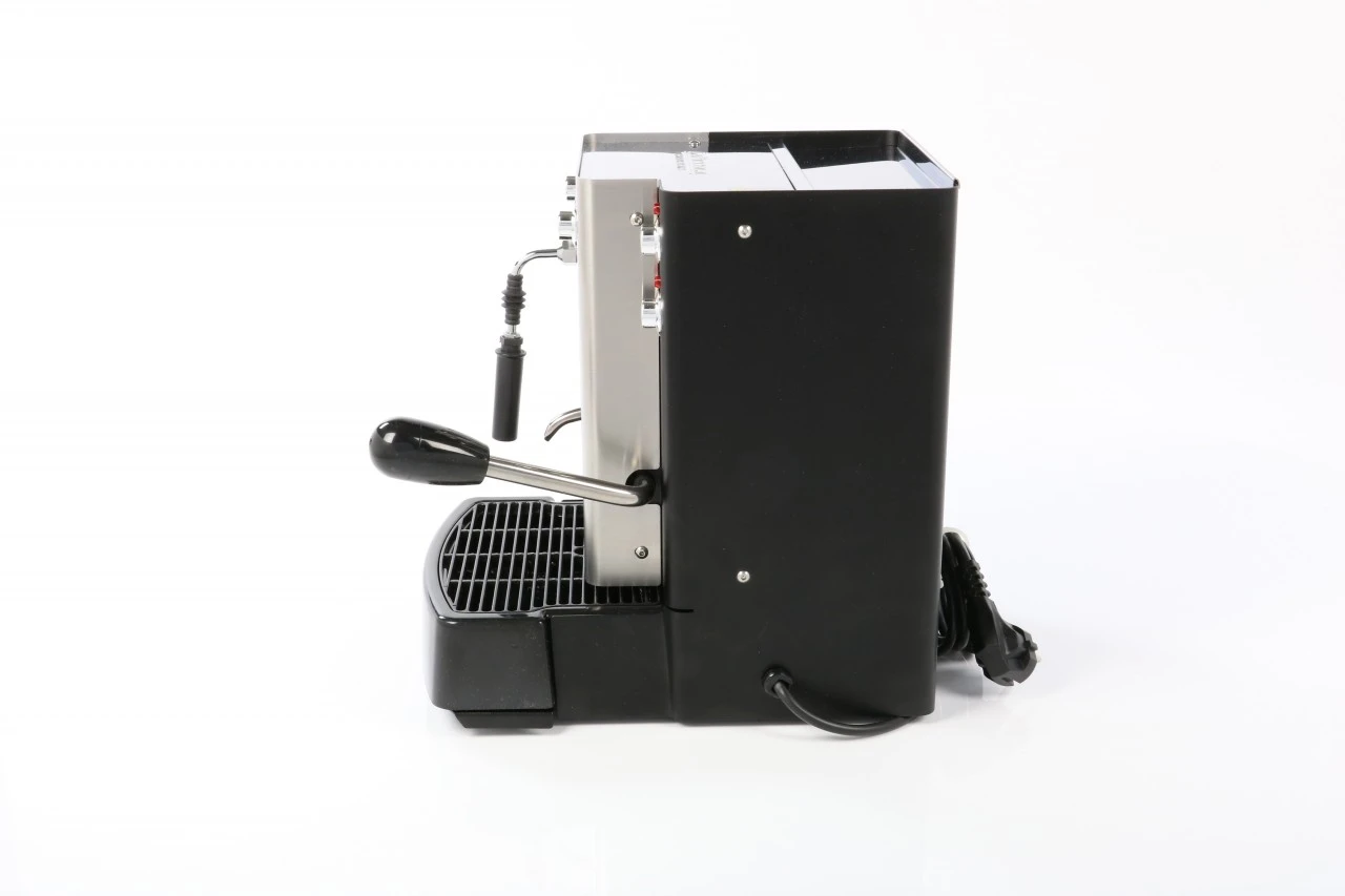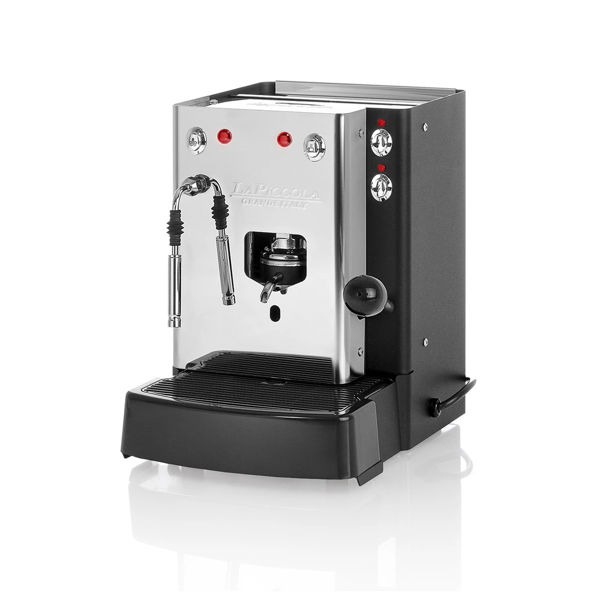 Die La Piccola SARA ESE Maschine ist die goldene Mitte – hier in der Variante VAPORE CLASSIC NERO mit schwarz lackierten Seitenblechen