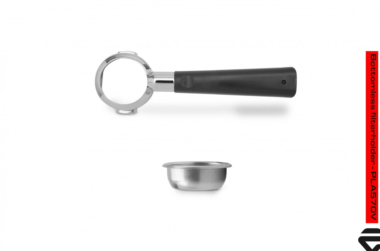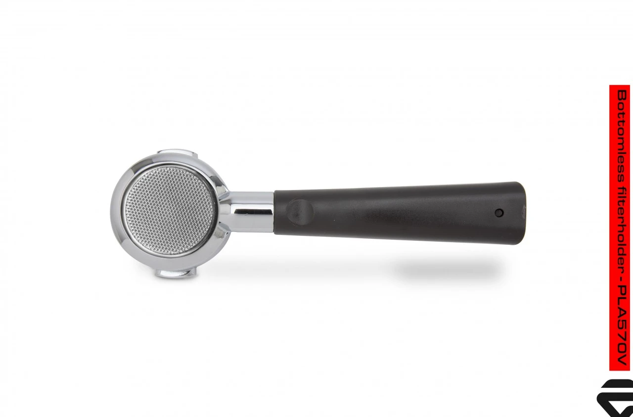 Bodenloser Siebträger für alle 57mm Brühgruppen. Der Griff des Siebträger ist eckig und hat am Ende das Lelit-Logo eingeprägt. Im Lieferumfang ist ein Doppelsiebeinsatz mit 18-21g dabei.