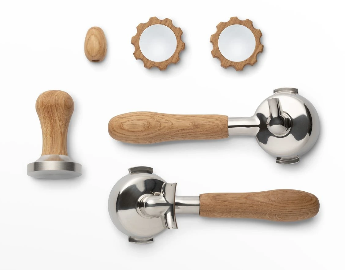 - Mit einem oder zwei Siebträgern, 2 Drehknöpfe, Bezugshebelgriff und 58mm Tamper