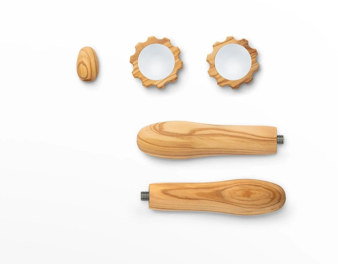 Mit diesem Veredelungsset aus Holz können Sie Ihrer Lelit Mara oder den optischen und haptischen Feinschliff verleihen, der Ihren Wünschen entspricht. Zur Auswahl der Holzarten stehen Olive, Nuss und Eiche. Jede Holzart hat ihre eigene ganz besondere Charakteristik: Olive mit einer markant verlaufenden Maserung, Nuss mit einem gleichmäßig dunklen Holzverlauf und die Eiche mit einem leichten Farbspiel abhängig vom Betrachtungswinkel.
