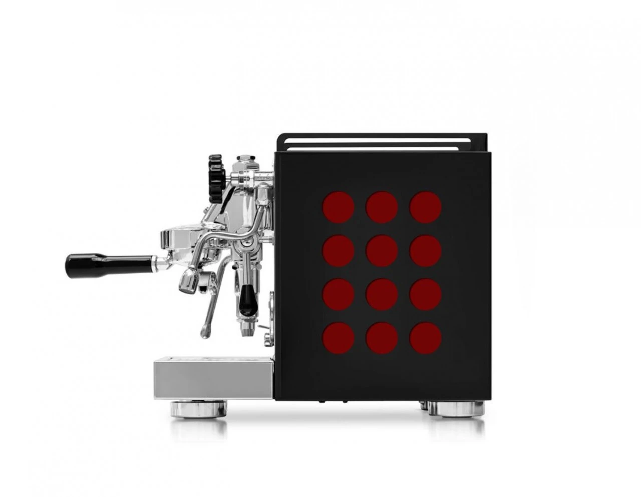 Die neue Rocket Espressomaschine – Appartamento mit schwarzem Gehäuse und roten Seitenteilen