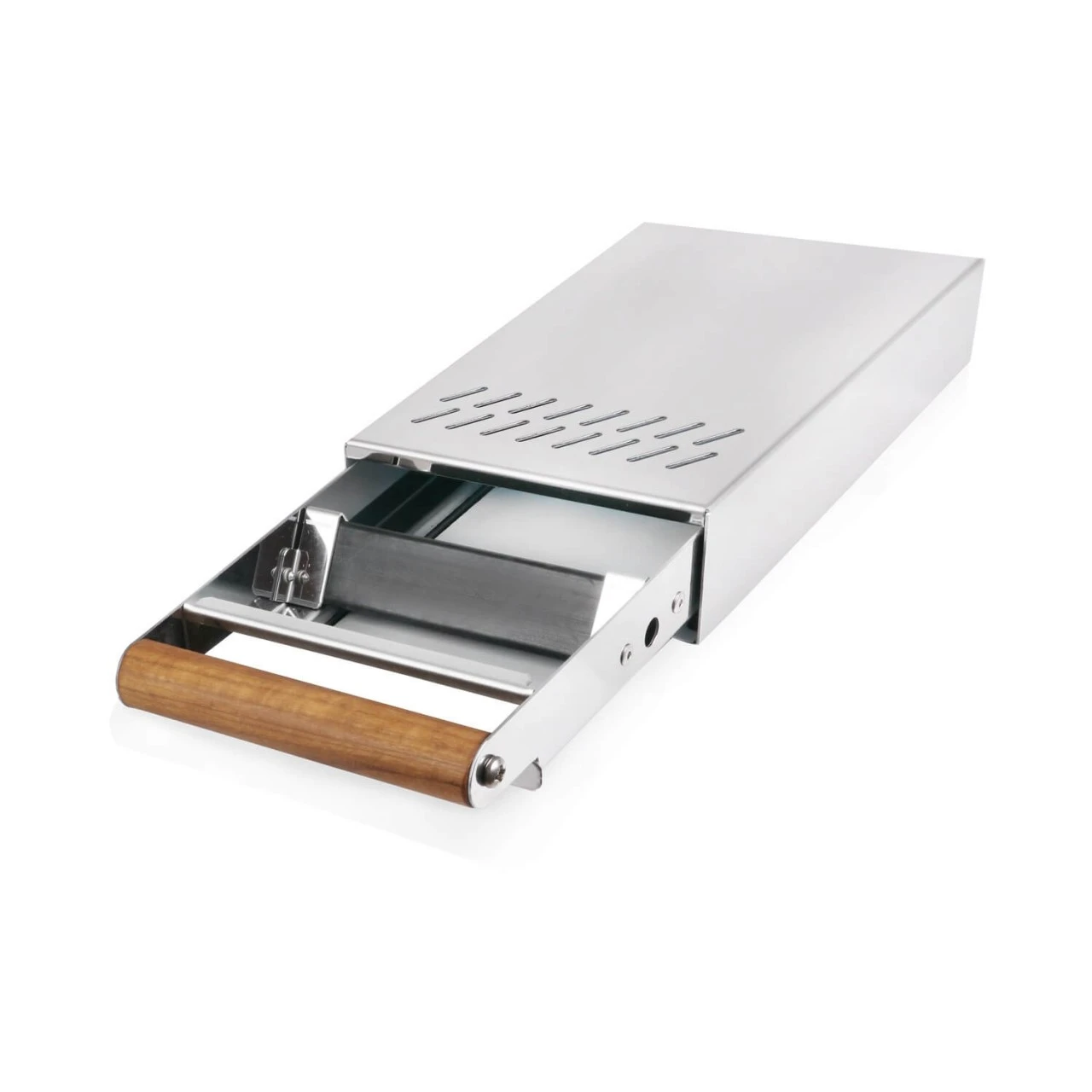 Wer kennt das Problem nicht, wenn Kaffeepulver beim Mahlen daneben fällt und man alles wieder aufwendig sauber machen muss. Der Micro Lux Sudschubalden hat genau dafür die vorne/oben angebrachten Lüftungsschlitze (bei anderen Sudschubläden normalerweise hinten angebracht) um Jedem das Saubermachen zu erleichtern, da man die Brösel gleich dort hineinwischn kann. Zwei weitere Pluspunkte gegenüber anderen vergleichbaren Modellen von Joefrex sind: