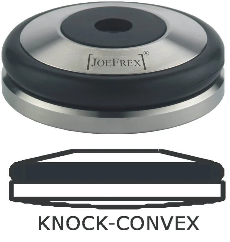 Nach dem ersten Antampern des Kaffeemehls wird seitlich leicht an den Siebträger angeklopft, engl. „knock“, was bewirkt, dass alles Espressopulver seitlich vom Rand noch in den Siebträger fällt. Dann wird nochmals getampert. Damit zu diesem leichten Schlag an den Siebträger nicht die Tamper Base benutzt werden muß, was zu Beschädigungen des weichen Siebträgers führen könnte, oder sogar der Holzgriff, kann nun mit dem in die Base eingearbeiteten Silikon-Ring geknockt werden. Diese Erfindung hat sich Joefrex schützen lassen.