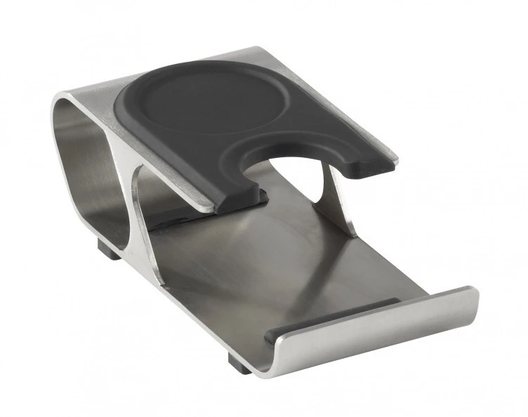 Das Material dieser Tampingstation besteht aus gelasertem 4mm Edelstahl und hochwertigem Silikon. Diese Materialwahl macht diesen Artikel langelebiger und hygienischer als Bauformen aus Holz und Gummi.