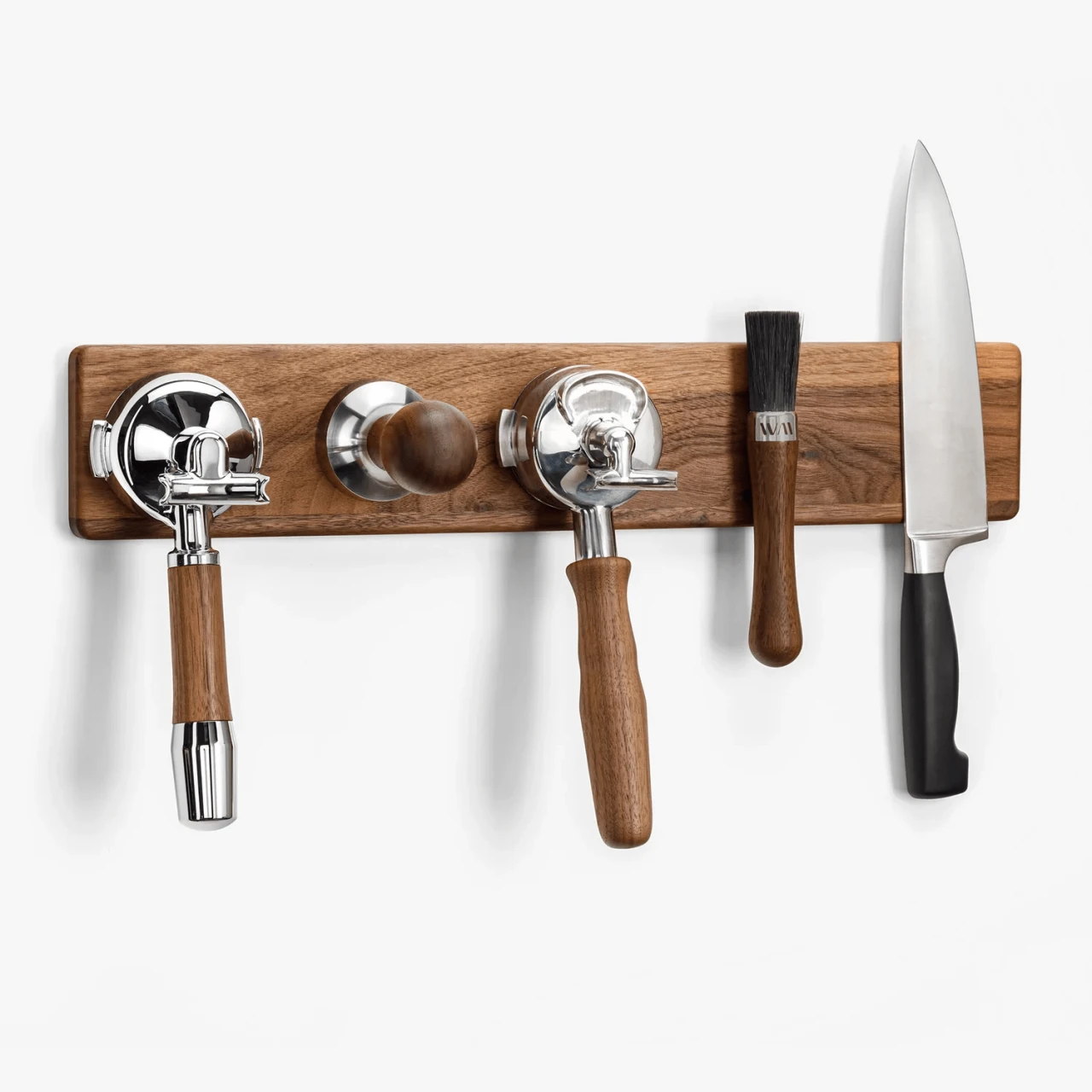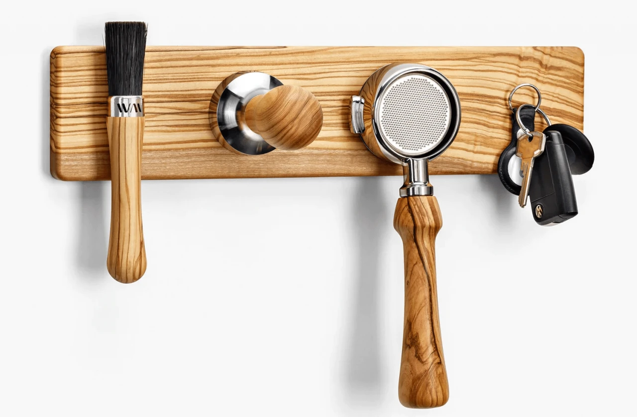 Mit dem innovativen Wiedemann Hangup lässt sich unser Equipment elegant verstauen. Egal ob Präzisionstamper mit Präzisionstrichter, Reinigungspinsel oder Siebträger. Jetzt hat alles seinen Platz. Das Hangup ist eine hochwertige Magnetleiste aus Hartholz. Siebträger können mit Hilfe des am Hangup verstaut werden.