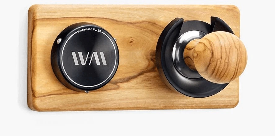 Der innovative Wiedemann hält alle gängigen 58er Siebträger an Ort und Stelle. Der Puck klemmt den Siebträger im Inneren des Siebes sicher fest. Der Puck wird durch den integrierten Magneten verlässlich am Hangup befestigt: